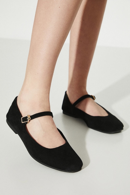 Балетки из коллекции Medicine. Изготовлены из замши. - Мягкая и гибкая подошва обеспечивает комфорт и свободу движений. - Квадратный, жёсткий носок. - Усиленный задник. - Застежка-пряжка со штифтом для индивидуальной подгонки. - Резиновая подошва. - Кожаный салон. - Кожаная стелька. - Модель на плоской подошве. - Размеры указаны для размера: 38. - Длина вставки: 24,5 см.