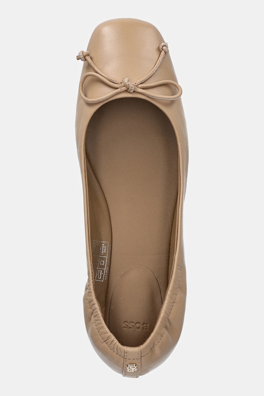 Эти балетки из коллекции BOSS изготовлены из натуральной кожи. Модель оснащена кожаной стелькой, которая благодаря естественным порам предотвращает натирание, потертости и появление неприятного запаха. - Квадратный, мягкий нос. - Мягкий задник защищает пятку от истирания. - Устойчивая подошва. - Декоративная деталь спереди. - Длина вставки: 23 см. - Размеры указаны для размера: 37.