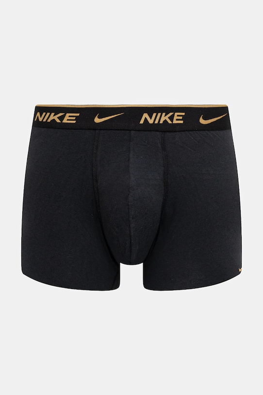 Боксёрские шорты из коллекции Nike. Изготовлены из эластичного трикотажного материала. Комплект из трёх пар. - Технология DRI-FIT – специальная ткань, изготовленная из смеси гидрофобных и гидрофильных волокон. Эта передовая система обеспечивает более быстрый и эффективный отвод пота от кожи. - Широкий эластичный пояс. - Ширина талии: 37 см. - Длина: 26 см. - Размеры указаны для размера: M.