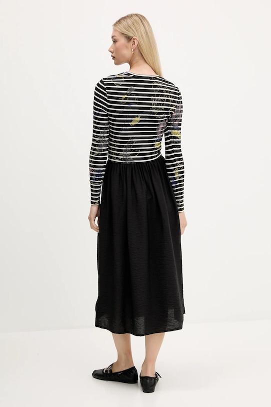 Это платье из коллекции Desigual выполнено из комбинации двух разных материалов. Полиэстер обеспечивает большую устойчивость к сминанию. - Расклешенный крой. - Классический круглый вырез. - Два боковых накладных кармана. - Модель выполнена из трикотажного полотна в рубчик. - Длина рукава: 60 см. - Длина: 126 см. - Ширина под мышками: 37 см. - Размеры указаны для размера: S.