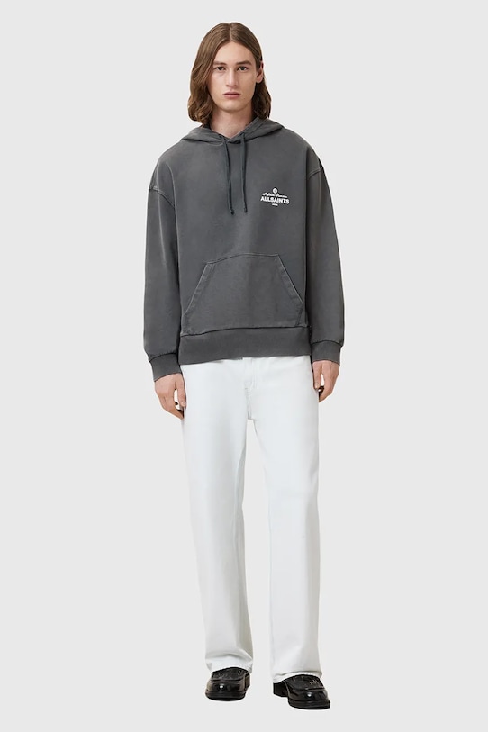 Толстовка с капюшоном из коллекции AllSaints. Изготовлена из слегка эластичной хлопковой ткани. - Органический хлопок выращивается без использования вредных химикатов, химических пестицидов и искусственных удобрений. - Большой размер. - Капюшон с завязками. - Заниженная линия плеча. - Рукава и низ изделия отделаны удобными эластичными манжетами. - Модель с принтом на груди и спине.