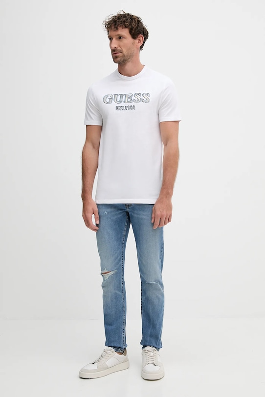 Футболка из коллекции Guess выполнена из тонкой, слегка тянущейся ткани. Модель выполнена из мягкого и приятного на ощупь материала. - Органический хлопок выращивается без использования вредных химикатов, химических пестицидов и искусственных удобрений. - Приталенный фасон. - Классический круглый вырез. - Длина: 70 см. - Ширина под мышками: 51 см. - Размеры указаны для размера: M.