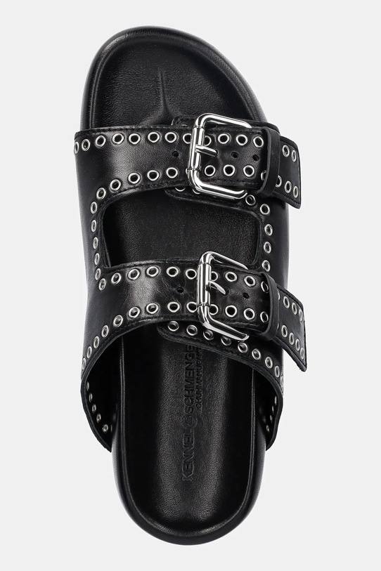 Эти шлёпанцы Kennel & Schmenger изготовлены из кожи наппа. Они оснащены кожаной подкладкой, которая обеспечивает комфорт вашим ногам и предотвращает натирание, потёртости и появление неприятного запаха. - Застежка на две пряжки со штифтом для индивидуальной посадки. - Уютный салон. - Декоративные детали. - Устойчивая подошва. - Длина вставки: 23 см. - Размеры указаны для размера: 37.