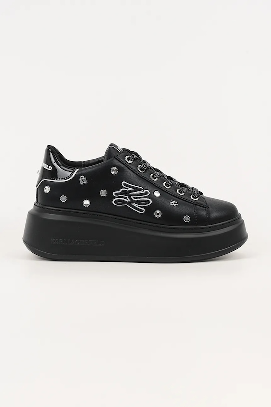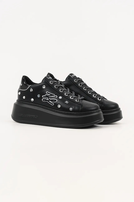 Кроссовки из коллекции Karl Lagerfeld. Верх из натуральной кожи не имеет пор и легко чистится влажной тканью. - Круглый, жёсткий носок. - Усиленный задник с мягким наполнителем защищает пятку от истирания. - Классическая шнуровка позволяет индивидуально подогнать обувь по ноге. - Резиновая подошва прочная и устойчивая к повреждениям. - Платформенная модель. - Декоративные детали.
