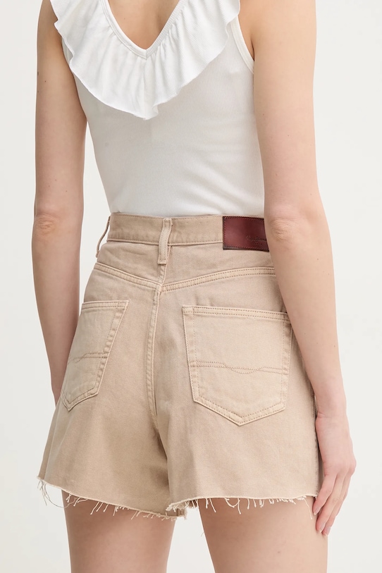 Шорты из коллекции Pepe Jeans, выполненные из денима. Изготовлены из жёсткого, сохраняющего форму материала. - Модель из линейки Pepe Future, в которую входят изделия, изготовленные в ходе экологически устойчивого производства. - Модель с высокой талией, застежкой на пуговицы и молнию. - Три накладных кармана спереди. - Два накладных кармана на ягодицах. - Модель с декоративной бахромой.