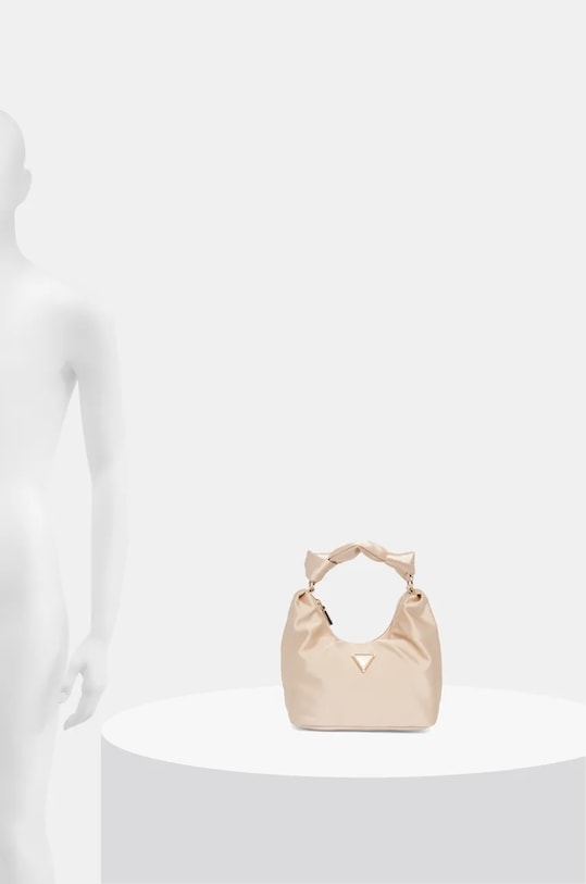 Небольшая сумочка из коллекции Guess. Изготовлена из текстильного материала, с застёжкой.