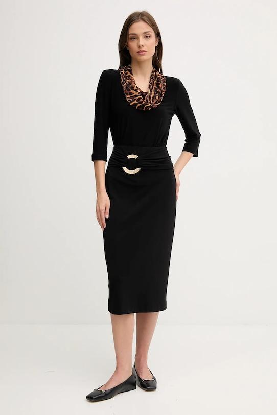Юбка из коллекции Joseph Ribkoff выполнена из тонкого, высокоэластичного трикотажа. Ткань мягкая и приятная на ощупь. - Приталенный крой, подчеркивающий силуэт. - Высокая талия с резинкой предотвращает скольжение во время движения. - Плоские швы защищают кожу от ссадин и раздражения. - Модель без подкладки. - Ширина талии: 36 см. - Длина: 78 см. - Размеры указаны для размера: 36.