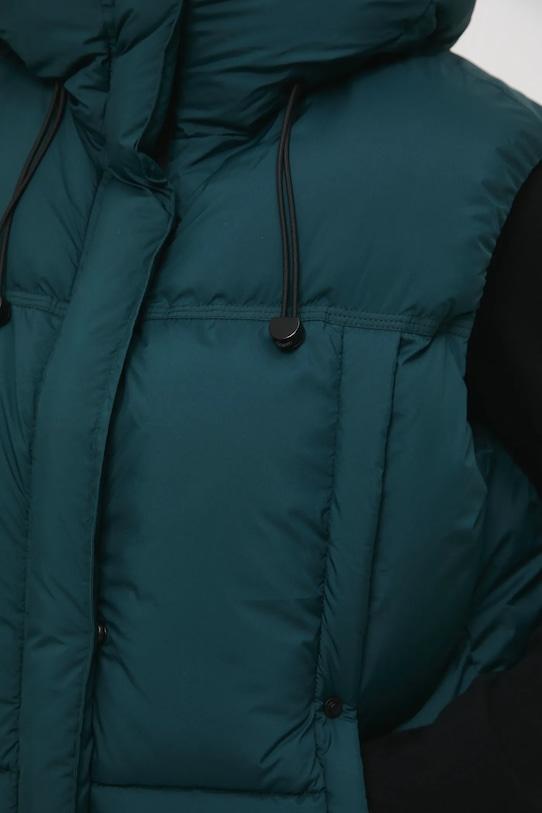 Жилет из коллекции «Медицина». Изготовлен из стёганого материала. - Большой размер. - Застежка-молния и кнопки. - Поднятый воротник. - Нижний край отделан завязками и стопорами. - Накладные карманы. - Капюшон с завязками и стопорами. - Стеганая модель. - Утепленная модель с подкладкой. - Длина: 63 см. - Ширина под мышками: 65 см. - Размеры указаны для размера: S.