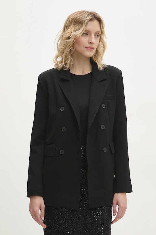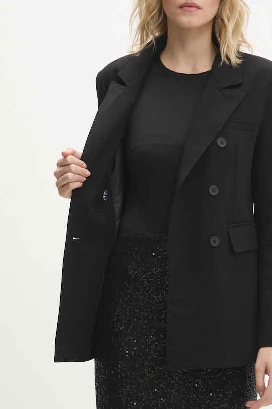 Блейзер из коллекции Answear.LAB, выполненный из гладкой ткани. Доступен эксклюзивно на Answear.com. - Простой дизайн, не стесняющий движений. - Застежка на пуговицы. - Модель с карманами, декорированными клапанами. - Классические лацканы. - В плечах вшиты подкладки. - Длина рукава: 59 см. - Ширина под мышками: 41 см. - Длина: 64 см. - Размеры указаны для размера: S.