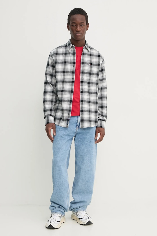 Рубашка из коллекции Tommy Jeans из хлопчатобумажного материала. - Рубашка прямого кроя мягко облегает фигуру, но не подчеркивает ее, обеспечивая свободу движений. - Удобная застежка на кнопки позволяет легко надевать и снимать. - Модель с воротником. - Манжеты на пуговицах. - Длина: 80 см. - Длина рукава: 65 см. - Ширина под мышками: 50 см. - Размеры указаны для размера: M.