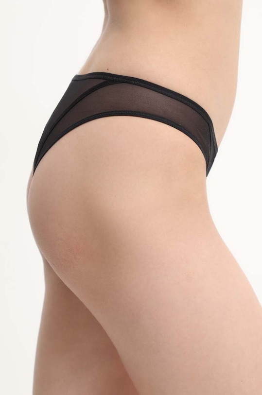 Бразильские шорты из коллекции Scandale. Изготовлены из прозрачного материала. - Модель изготовлена из волокон, полученных с использованием экологически безопасных производственных процессов, что позволяет снизить воздействие на окружающую среду. - Средняя посадка на талии с эластичным поясом предотвращает сползание во время движения. - Подкладка с хлопковой вставкой в области шагового шва.