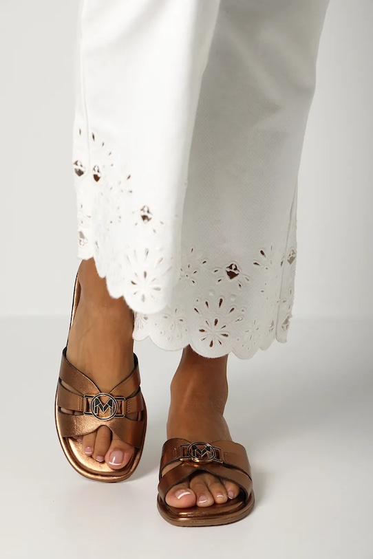 Шлёпанцы из коллекции Mexx. Изготовлены из натуральной кожи и оснащены кожаной подкладкой, которая обеспечивает комфорт и предотвращает натирание, потертости и появление неприятного запаха. - Гладкий материал. - Кожаный салон. - Кожаная стелька комфортна для стопы и предотвращает натирание, потертости и появление неприятного запаха. - Резиновая подошва прочная и устойчивая к повреждениям.