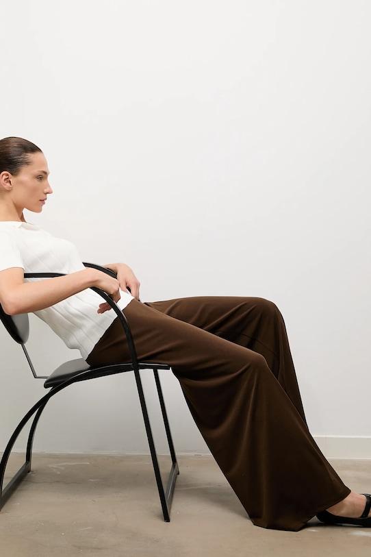 Брюки из коллекции Answear.LAB из гладкого трикотажа. Полиэстер обеспечивает повышенную устойчивость к сминанию. - Высокая талия с эластичным поясом. - Прямая нога полной длины. - Тонкий, эластичный трикотаж. - Ширина талии: 32 см. - Ширина бедер: 47 см. - Высота талии: 30 см. - Ширина штанины внизу: 35 см. - Ширина штанины: 31 см. - Размеры указаны для размера: S.