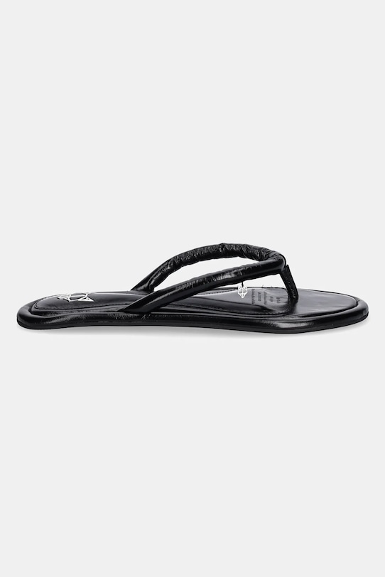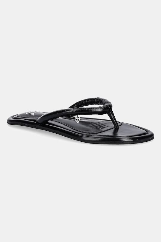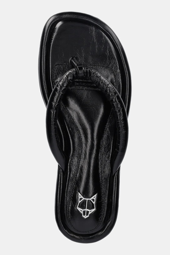 Шлёпанцы из коллекции Naked Wolfe из натуральной кожи. Верх из непористой ткани легко чистится влажной тканью. - Модель с кожаной внутренней частью, комфортной для стопы, предотвращающей натирание, потертости и появление неприятного запаха. - Резиновая подошва прочная и устойчивая к повреждениям. - Модель на плоской подошве. - Входящий в комплект тканевый чехол защищает изделие от пыли.