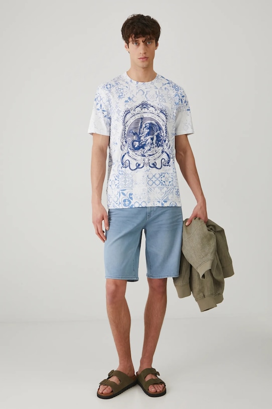 Шорты из коллекции Medicine. Изготовлены из гладкого денима. - Приталенный крой. - Модель со стандартной талией, застежкой на пуговицы и молнию. - Накладные карманы. - Гладкий материал. - Ширина талии: 43,4 см. - Ширина бедер: 55,4 см. - Высота талии: 28 см. - Ширина штанины по низу: 26,3 см. - Длина по внутреннему шву: 27,5 см. - Размеры указаны для размера: 32.