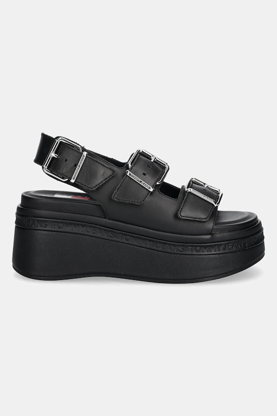 Сандалии из коллекции Tommy Jeans, изготовленные из натуральной кожи. Верх из непористой ткани легко чистится влажной тканью. - Застежка-пряжка со штифтом для индивидуальной подгонки. - Вал с регулируемой шириной. - Профилированная стелька гарантирует комфорт использования. - Резиновая подошва прочная и устойчивая к повреждениям. - Платформенная модель. - Высота платформы: 8 см.