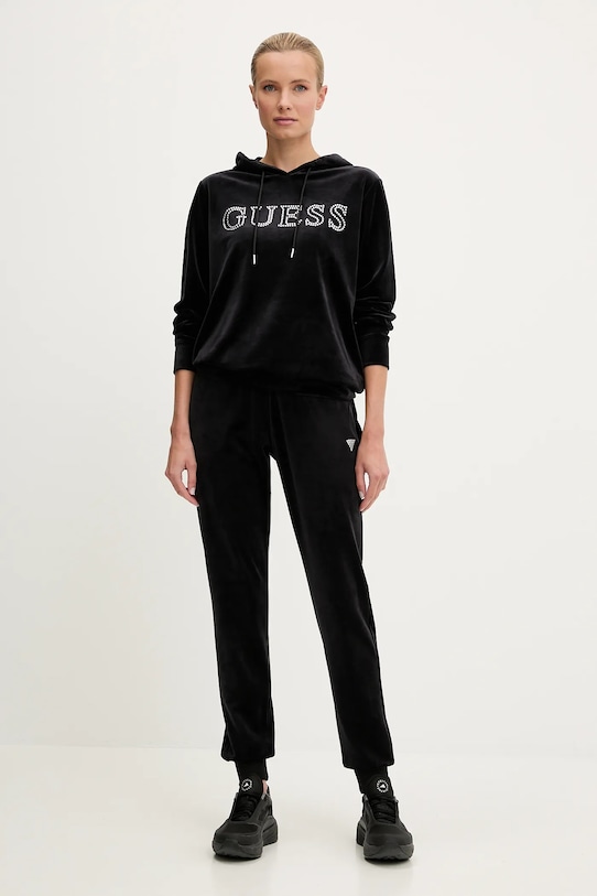 Эта толстовка с капюшоном из коллекции Guess выполнена из велюрового трикотажа. Полиэстер обеспечивает повышенную устойчивость к сминанию. - Свободный крой, обеспечивающий полную свободу движений. - Модель с капюшоном. - Капюшон с завязками. - Модель с аппликацией. - Длина: 65 см. - Ширина под мышками: 56 см. - Длина рукава: 63 см. - Размеры указаны для размера: S.