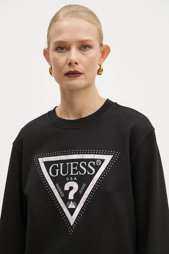 Свитшот из коллекции Guess из трикотажа с аппликацией. - Этот продукт частично изготовлен из органического хлопка. - Простой дизайн, не стесняющий движений. - Классический круглый вырез. - Рукава и низ изделия отделаны удобными эластичными манжетами. - Длина рукава (от горловины): 72 см. - Длина: 56 см. - Ширина под мышками: 51 см. - Размеры указаны для размера: S.