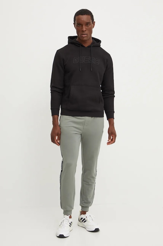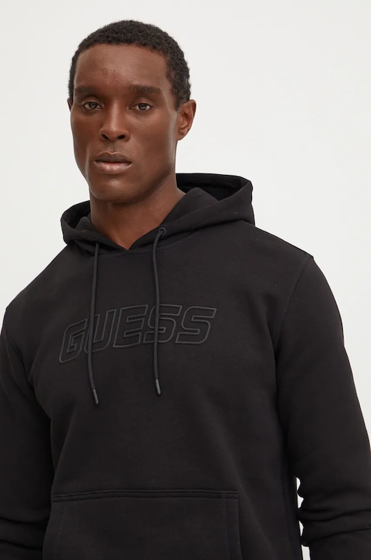 Толстовка с капюшоном из коллекции Guess из хлопкового трикотажа. - Тонкий, эластичный трикотаж. - Капюшон с завязками. - Практичный вставной карман-кенгуру спереди. - Рукава и низ изделия отделаны удобными эластичными манжетами. - Нашивка с логотипом спереди. - Длина: 69 см. - Длина рукава: 63 см. - Ширина под мышками: 55 см. - Размеры указаны для размера: M.