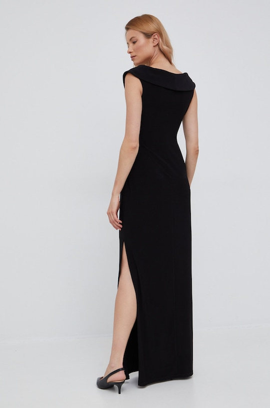 Платье из коллекции Lauren Ralph Lauren. Расклешённая модель выполнена из высокоэластичного трикотажа. Тонкий, струящийся материал. - Приталенный верх и свободный низ. - Острый вырез. - Декоративные оборки. - Застежка на молнию и крючок. - У него есть щель. - Модель на подкладке. - Длина: 150 см. - Ширина под мышками: 43 см. - Размеры указаны для размера: 36.