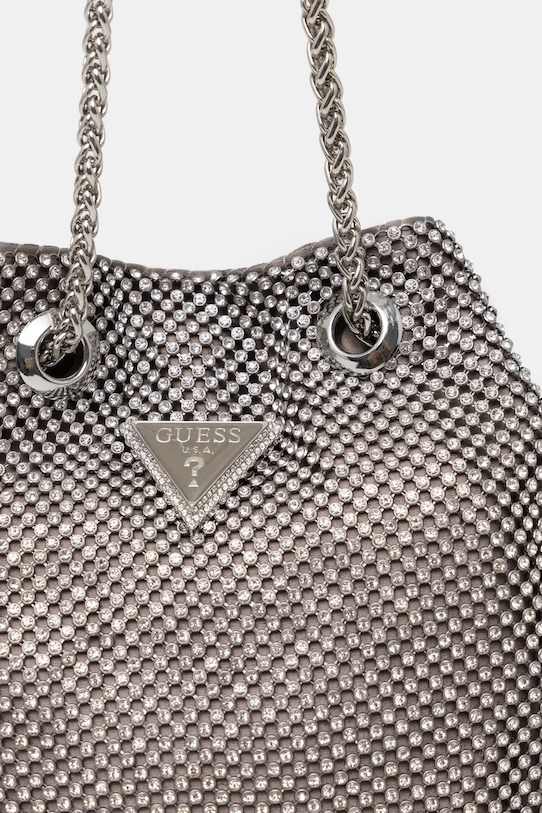 Маленькая сумочка из коллекции Guess. Модель на молнии, выполнена из текстиля и страз.