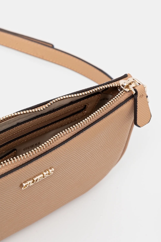 Небольшая сумочка из коллекции Guess. Модель с застёжкой-застёжкой выполнена из экокожи. В комплект входит сумка меньшего размера.