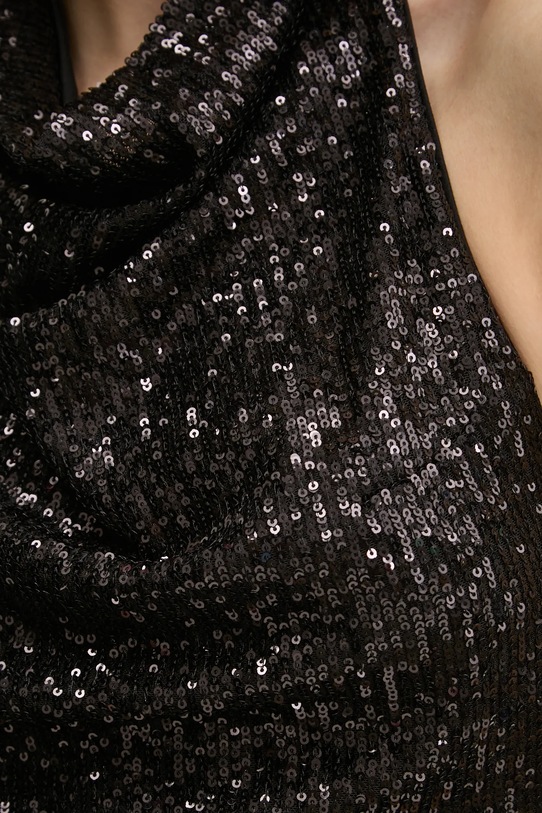 Блузка Superdry из материала с пайетками. Эффектный, мерцающий материал. - Изделие содержит переработанные волокнистые материалы. - Приталенный крой, подчеркивающий силуэт. - Модель с водолазкой. - Застегивается на пуговицы сзади. - Модель на подкладке. - Модель с открытой спиной. - Длина: 47 см. - Ширина под мышками: 37 см. - Размеры указаны для размера: S.