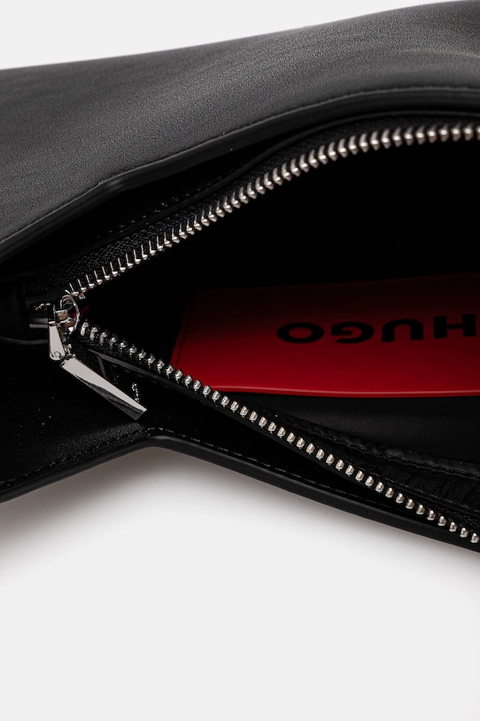 Небольшая сумочка из коллекции HUGO. Модель на молнии, выполнена из экокожи.