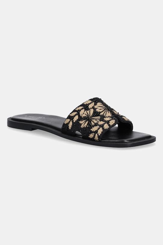 Шлёпанцы из коллекции Medicine. Изготовлены из комбинации текстиля и натуральной кожи. - Расстегивающаяся модель. - Декоративная аппликация из бисера. - Модель с декоративной вышивкой. - Кожаный салон. - Стелька из комбинации натуральной кожи и резины. - Резиновая подошва. - Модель на плоской подошве. - Длина вставки: 24,5 см. - Размеры указаны для размера: 38.