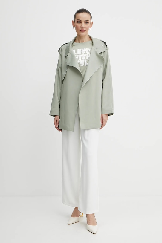 Короткое пальто из коллекции Morgan. Изготовлено из гладкого материала. - Удобная застежка-кнопка позволяет легко надевать и снимать. - Пояс на талии корректирует фигуру и еще больше подчеркивает талию. - Неутепленная модель с подкладкой. - Погоны на плечах. - Внешние карманы на молнии. - Длина: 98 см. - Ширина под мышками: 47 см. - Размеры указаны для размера: 36.