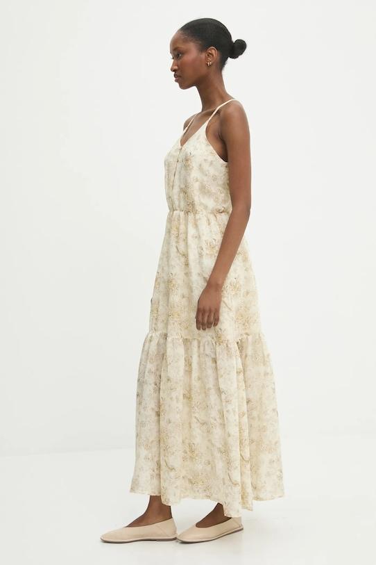Это платье из коллекции Answear.LAB выполнено из тонкой, неэластичной ткани. Модель выполнена из исключительно комфортного материала с высоким содержанием вискозы. - Расклешенный крой. - Дополнительный слой материала в виде подкладки. - Регулируемые, несъемные лямки. - Эластичный пояс. - Длина: 134 см. - Ширина под мышками: 40 см. - Размеры указаны для размера: S.