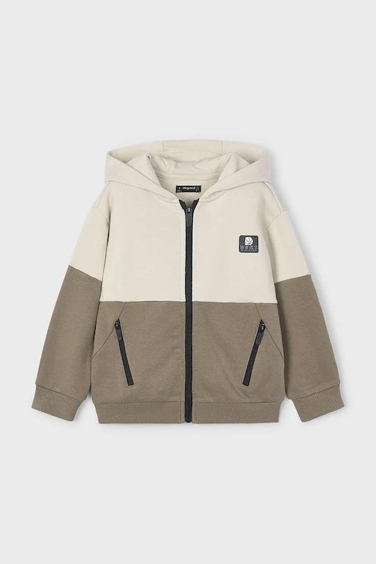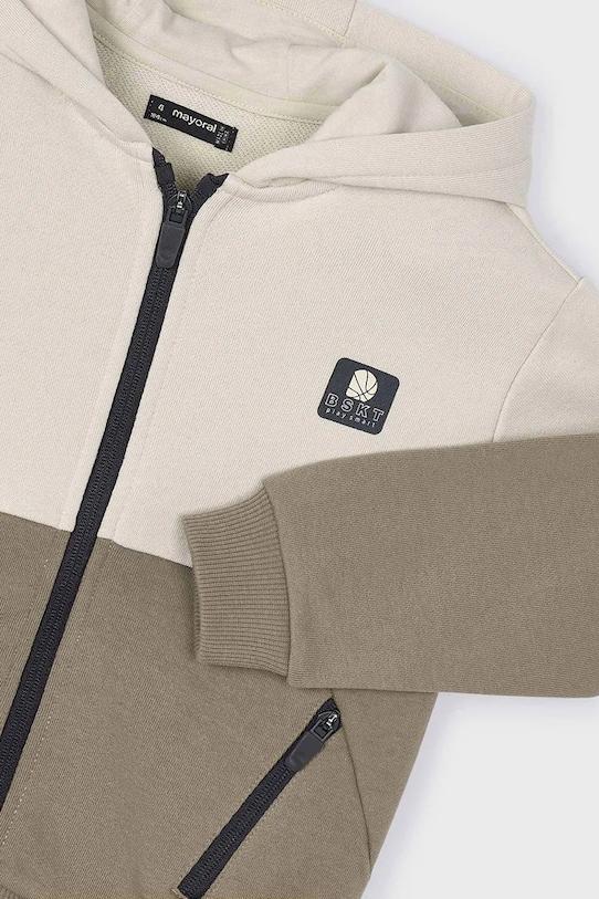 Толстовка с капюшоном из коллекции Mayoral. Эта толстовка с застежкой-молнией выполнена из гладкого трикотажа. - Простой дизайн, не стесняющий движений. - Рукава и нижний край отделаны удобными эластичными манжетами. - Крой рукава со спущенной линией плеча не ограничивает подвижность. - Два прорезных боковых кармана на молнии. - Застежка-молния. - Модель с капюшоном.
