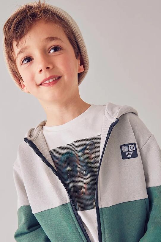 Толстовка с капюшоном из коллекции Mayoral. Эта толстовка с застежкой-молнией выполнена из гладкого трикотажа. - Простой дизайн, не стесняющий движений. - Рукава и нижний край отделаны удобными эластичными манжетами. - Крой рукава со спущенной линией плеча не ограничивает подвижность. - Два прорезных боковых кармана на молнии. - Застежка-молния. - Модель с капюшоном.
