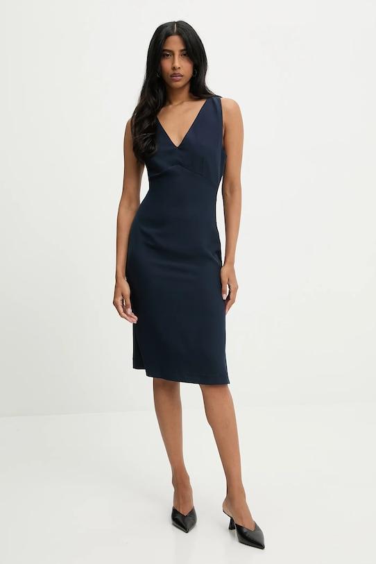 Это платье из коллекции Answear.LAB выполнено из тонкой, неэластичной ткани. Полиэстер обеспечивает лучшую устойчивость к сминанию. - Расклешенный крой. - Острый вырез. - Нерегулируемые, несъемные лямки. - У него есть щель. - Модель с открытой спиной. - Застежка-молния сзади. - Длина: 104 см. - Ширина под мышками: 38 см. - Размеры указаны для размера: S.