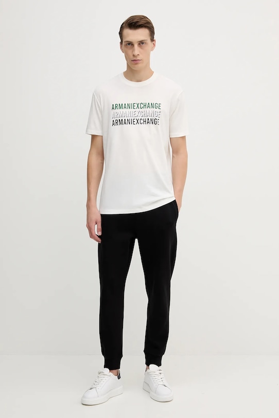Эта футболка из коллекции Armani Exchange выполнена из тонкой эластичной ткани. Модель выполнена из исключительно комфортного материала с высоким содержанием хлопка. - Обычная посадка. - Классический круглый вырез. - Тонкий, эластичный трикотаж. - Модель с нанесением логотипа бренда. - Длина: 72 см. - Ширина под мышками: 53 см. - Размеры указаны для размера: M.