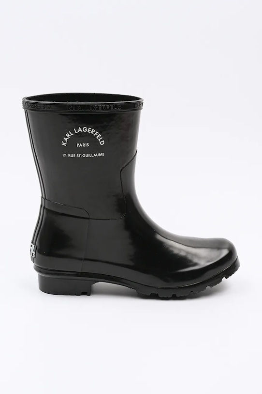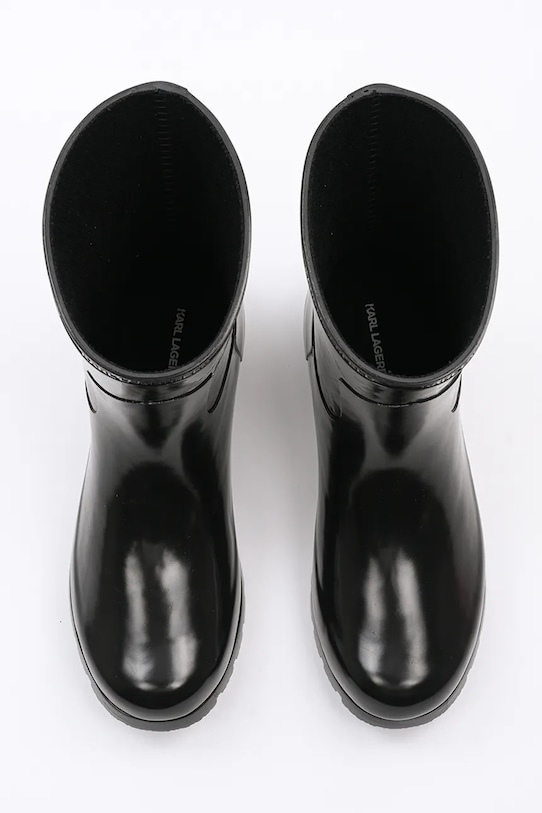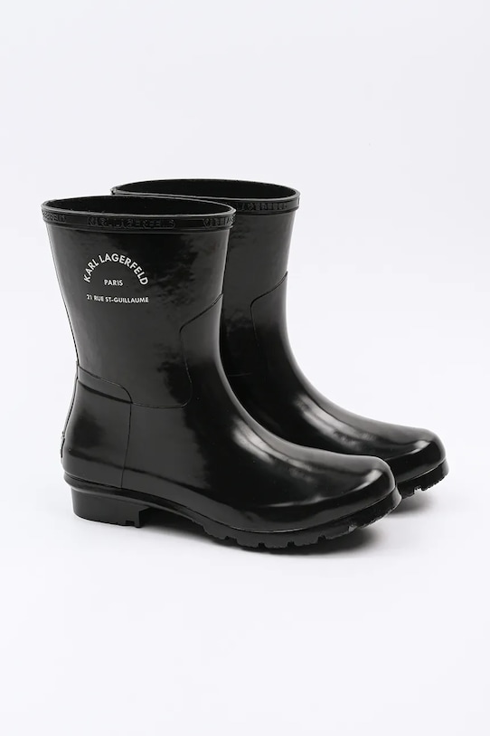 Сапоги-резиновые сапоги из коллекции Карла Лагерфельда. Изготовлены из блестящего, гладкого материала. - Круглый, жёсткий носок. - Текстильная внутренняя часть комфортна для ног и облегчает содержание обуви в чистоте. - Усиленный задник обеспечивает отличную поддержку лодыжки и пятки. - Нескользящая рифленая подошва. - Резиновая подошва прочная и устойчивая к повреждениям.