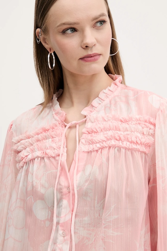 Эта рубашка Desigual выполнена из прозрачного материала. Эффектный дизайн для особых случаев. - Рубашка прямого кроя мягко облегает фигуру, но не подчеркивает ее, обеспечивая свободу движений. - Удобная застежка на кнопки позволяет легко надевать и снимать. - Декоративная окантовка по вырезу горловины. - Материал с металлической нитью. - Модель с декоративной аппликацией.