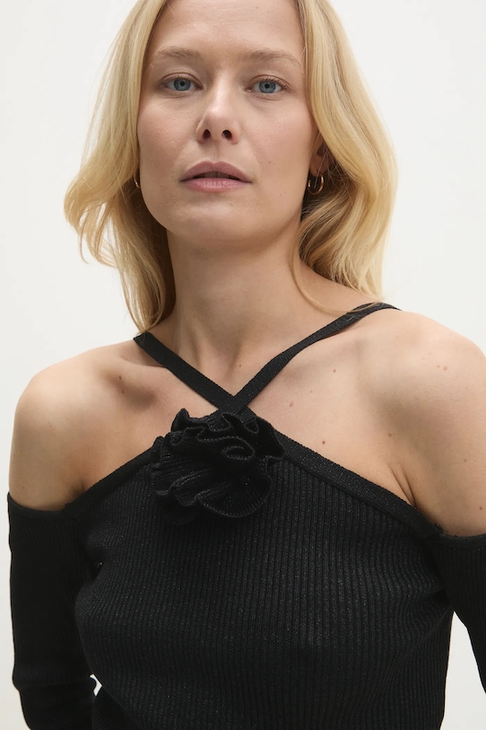 Эта блузка из коллекции Answear.LAB выполнена из мерцающего материала. Доступна эксклюзивно на Answear.com. - Приталенный крой, подчеркивающий силуэт. - Декоративная деталь спереди. - Модель выполнена из трикотажного полотна в рубчик. - Тонкий, эластичный трикотаж. - Длина рукава: 52 см. - Длина: 43 см. - Ширина под мышками: 31 см. - Указаны размеры: S/M.