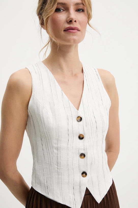 Жилет из коллекции Answear.LAB выполнен из тонкой ткани. Модель выполнена из исключительно комфортного и качественного материала. - Простой дизайн, не стесняющий движений. - Удобная застежка на кнопки позволяет легко надевать и снимать. - Дополнительный слой материала в виде подкладки. - Длина: 52 см. - Ширина под мышками: 43 см. - Размеры указаны для размера: S.