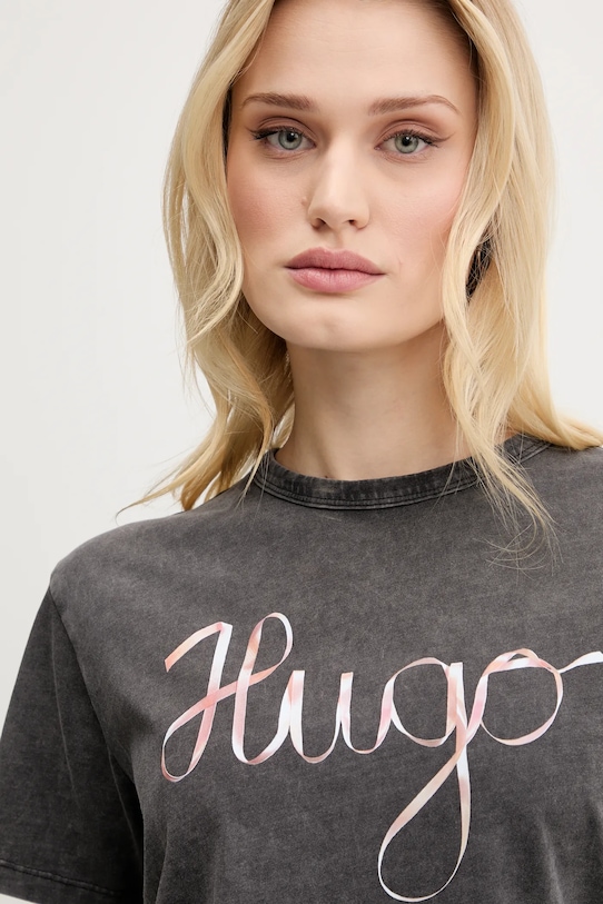 Эта футболка из коллекции HUGO выполнена из тонкой, эластичной ткани на основе дышащего хлопка. - Изделия линейки WE ACT не менее чем на 60% изготавливаются из материалов, полученных более экологичным способом. - Простой дизайн, не стесняющий движений. - Круглый ребристый вырез. - Короткий рукав. - Графический логотип бренда спереди. - Материал с эффектом стирки.