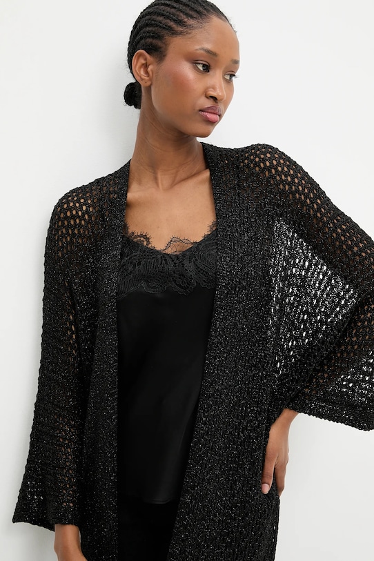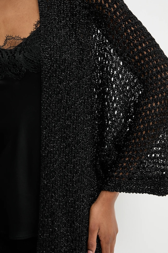 Эта куртка из коллекции Answear.LAB выполнена из ажурной ткани. Оптимальная эластичность обеспечивает полную свободу движений. - Расстегивающаяся модель. - Свободный крой, обеспечивающий полную свободу движений. - Короткий рукав. - Материал с металлической нитью. - Модель без подкладки. - Длина: 122 см. - Ширина под мышками: 65 см. - Указаны размеры: S/M.