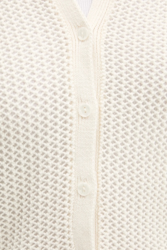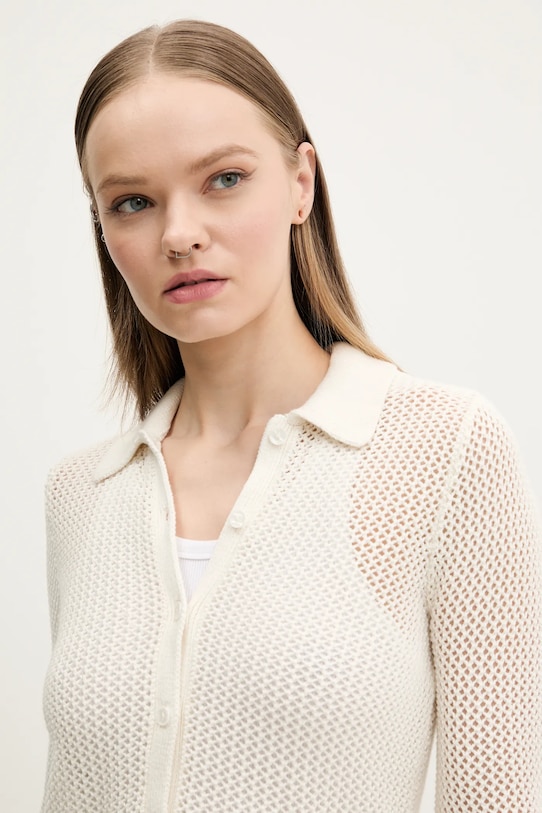 Этот кардиган Abercrombie & Fitch выполнен из ажурной трикотажной ткани, изготовленной из дышащего хлопкового материала. - Этот свитер прямого кроя обеспечивает комфорт и универсальный вид. Он мягко облегает фигуру, не перетягивая её. Классический и простой, он прекрасно сочетается как с элегантными, так и с повседневными образами. - Застежка на пуговицы. - Модель с воротником.