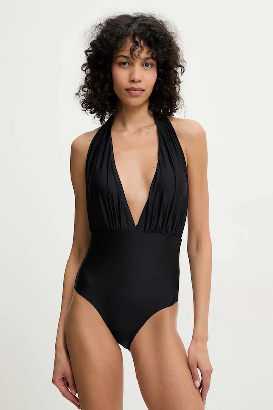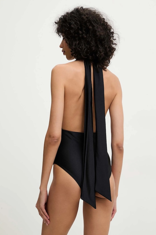 Слитный купальник из коллекции Answear.LAB. Изготовлен из эластичной, облегающей ткани. - Регулируемые, несъемные бретели с завязками на шее. - Съемные подушечки слегка придают жесткость, стабилизируют бюст и обеспечивают дополнительную защиту. - Дополнительный слой материала в виде подкладки. - Плоские эластичные швы защищают кожу от раздражения и не стесняют движений.