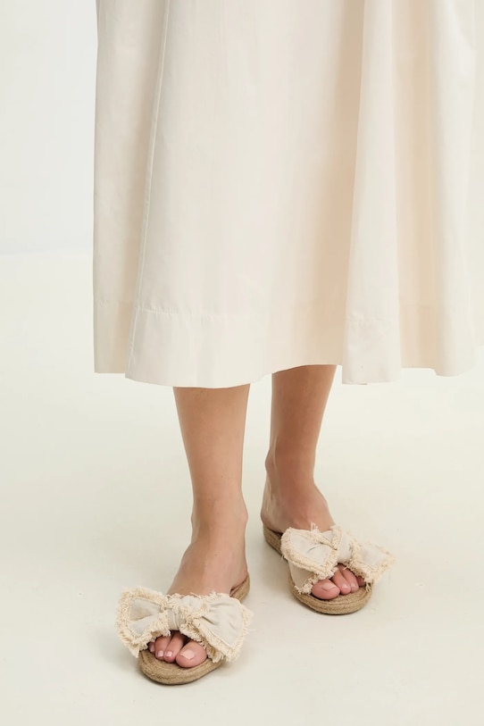Эти шлёпанцы из коллекции Answear.LAB изготовлены из текстиля. Эти лёгкие и удобные слипоны идеально подойдут для повседневной носки. - Модель на плоской подошве. - Резиновая подошва прочная и устойчивая к повреждениям. - Текстильная внутренняя часть комфортна для ног и облегчает содержание обуви в чистоте. - Длина вставки: 25 см. - Размеры указаны для размера: 39.