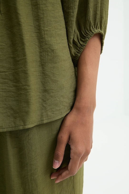 Эта блузка из коллекции Answear.LAB выполнена из гладкой ткани. Полиэстер обеспечивает повышенную устойчивость к сминанию. - Свободный крой, обеспечивающий полную свободу движений. - Классический круглый вырез. - Рукава три четверти с удобной эластичной манжетой. - Рукав реглан. - Длина: 64 см. - Ширина под мышками: 49 см. - Размеры указаны для размера: S.