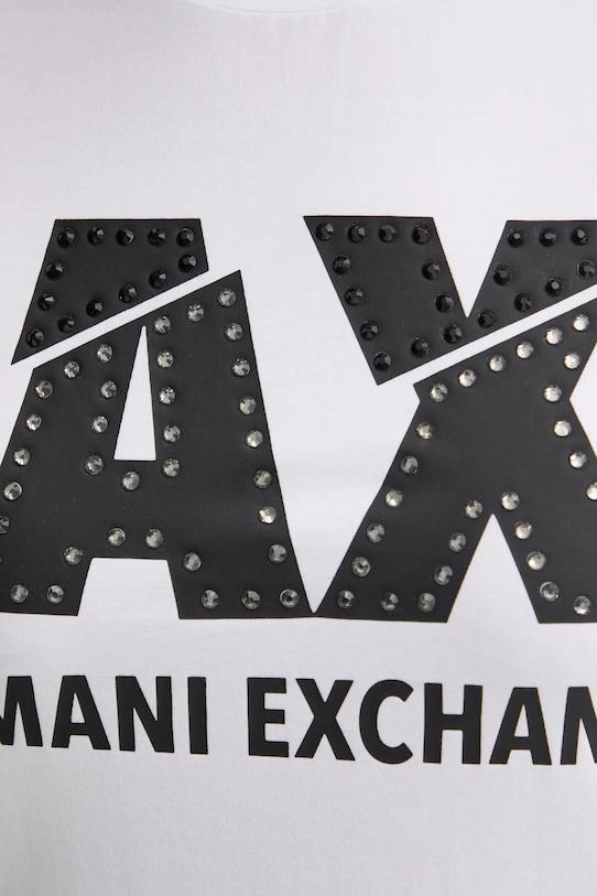 Эта футболка из коллекции Armani Exchange выполнена из тонкой, эластичной ткани, изготовленной из дышащего материала с высоким содержанием хлопка. - Простой дизайн, не стесняющий движений. - Короткий рукав. - Классический круглый вырез. - Модель с принтом. - Модель со стразами. - Длина: 59 см. - Ширина под мышками: 43 см. - Размеры указаны для размера: S.