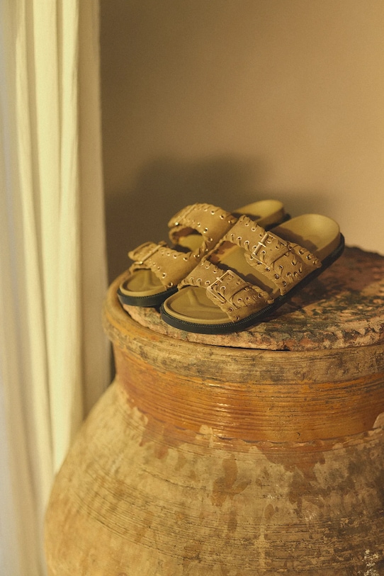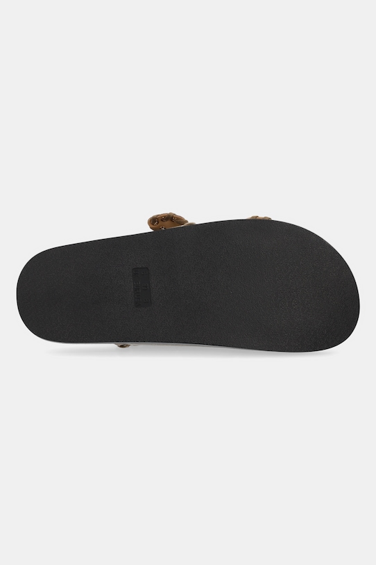 Эти шлёпанцы Answear.LAB изготовлены из искусственной замши. Регулируемый верх обеспечивает индивидуальную посадку. - Застежка на две пряжки со штифтом для индивидуальной посадки. - Слегка гибкая резиновая подошва обеспечивает больший комфорт использования. - Модель на плоской подошве. - Анатомическая стелька поддерживает свод стопы и обеспечивает длительный комфорт.