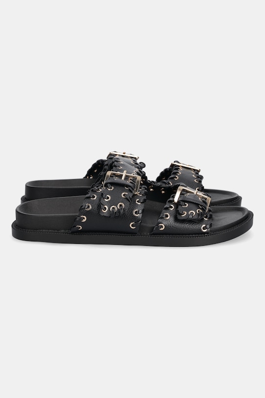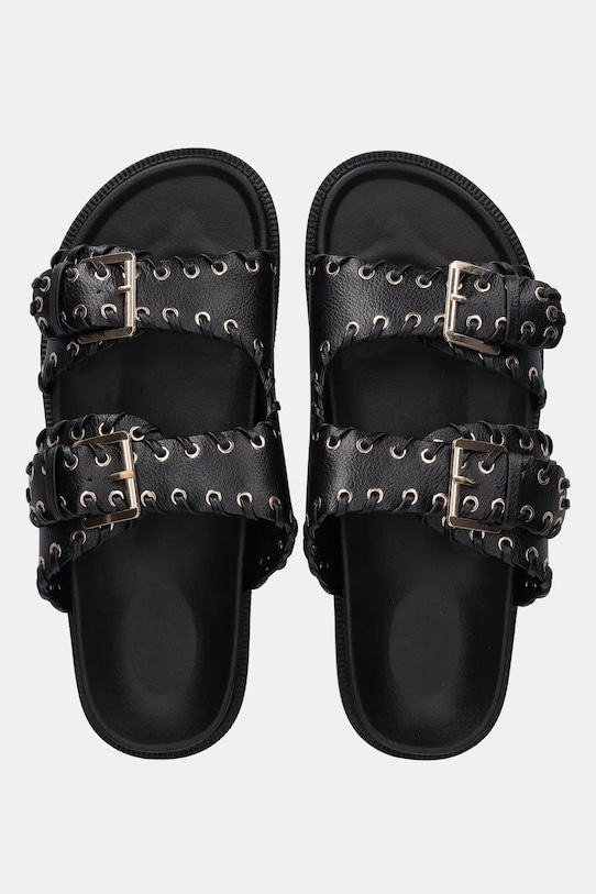 Эти шлёпанцы Answear.LAB изготовлены из искусственной замши. Регулируемый верх обеспечивает индивидуальную посадку. - Застежка на две пряжки со штифтом для индивидуальной посадки. - Слегка гибкая резиновая подошва обеспечивает больший комфорт использования. - Модель на плоской подошве. - Анатомическая стелька поддерживает свод стопы и обеспечивает длительный комфорт.