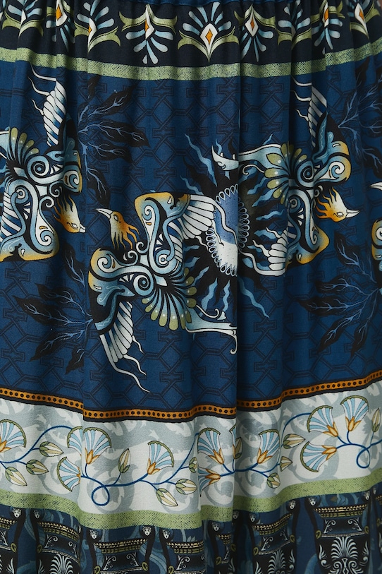 Юбка из коллекции «Медицина». Расклешенный фасон из узорчатой ткани.