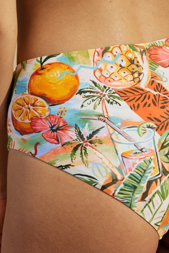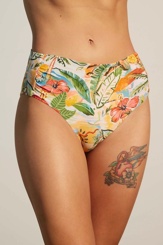 Раздельный купальник из коллекции Medicine. Изготовлен из ткани с узором. - В комплект входят трусики с высокой талией и бюстгальтер с подушечками. - Чашечки укреплены косточками. - Регулируемые, несъемные лямки. - Регулируемая застежка на пряжке сзади. - Модель с декоративными оборками. - Дополнительный слой материала в виде подкладки. - Узорчатый материал.